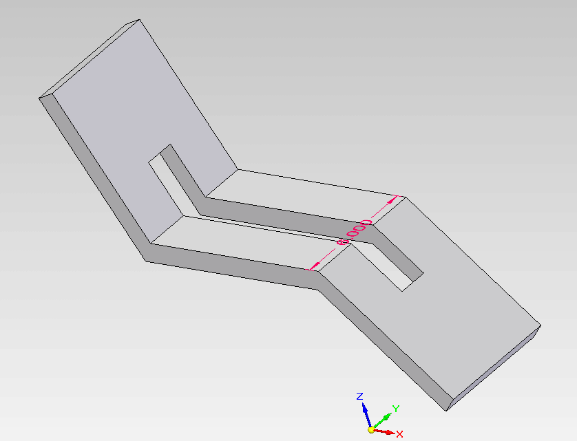 • I am assuming you are asking about the slot? With Synchronous I can adjust anything without having to sketch extrude remove after the original sketch is used to create the parent part. Or without starting over with new sketches to create the part and the slot because I need different angles at the bends. History based modelers won’t let you edit without going back in the tree and redoing sketches, extrudes, removes etc. Basically doing the whole part over just to get a variance of that part. I can keep the ends of the slot parallel with the ends of the part which would be impossible to do with a simple extrude remove. Each time to do this in history based with this part would require three sketches on three faces with extrude removes to do this with parallel ends and a complete slot. An angle on the end of the slot would be another sketch and extrude and regen. In ST I can make the ends of the slot to be any angle I want with live rules and no sketches or regen. Just grab the face and go. I can make a family of parts with longer, shorter and wider narrower slots by just clicking on and editing the dimensions assigned to this part.