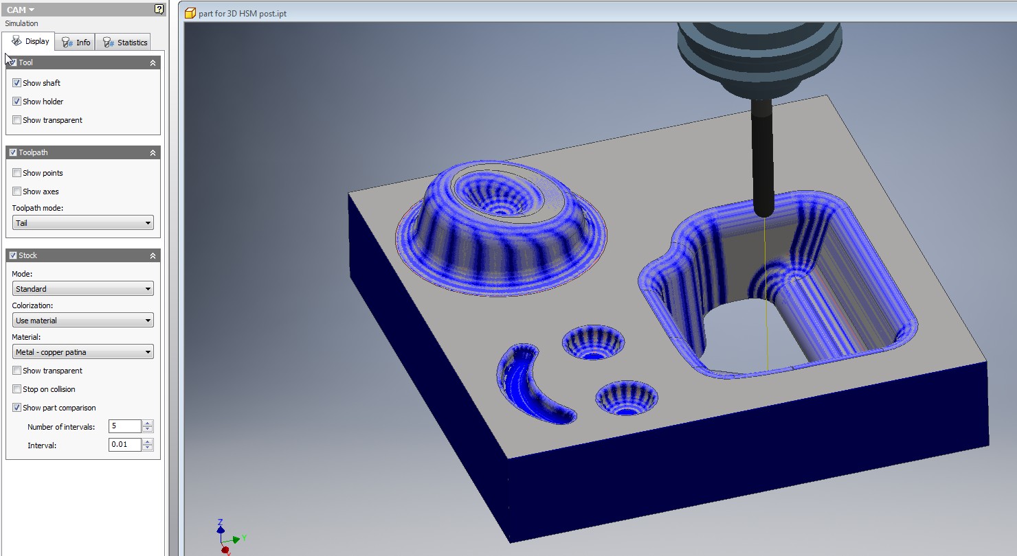 Working on a part for a post on cutting 3D in HSM and found something additional to talk about besides the toolpath selection. I was having trouble with simulation yielding accuracy results and so the questions began. When settings were as good as I thought they could be and still problems off to the answer guy. TP you know who you are and thanks for the info. The first and best answer to date. So let us delve into simple settings that make a big difference in accuracy.