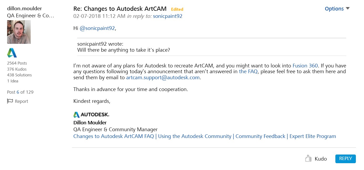 Here is the forum link. https://forums.autodesk.com/t5/artcam-forum/changes-to-autodesk-artcam/td-p/7758469