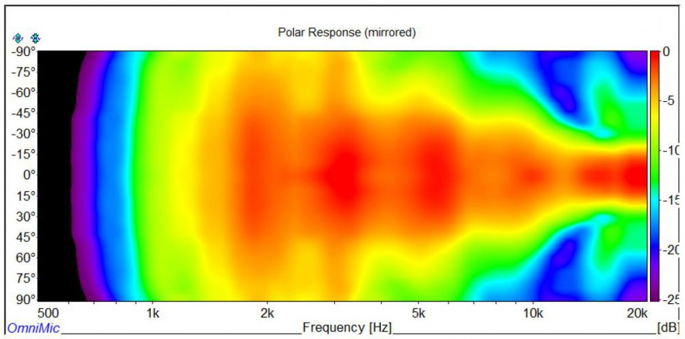 There is a bit of a hot spot at 5 kHz which moderates as the polar angle increases. I tried