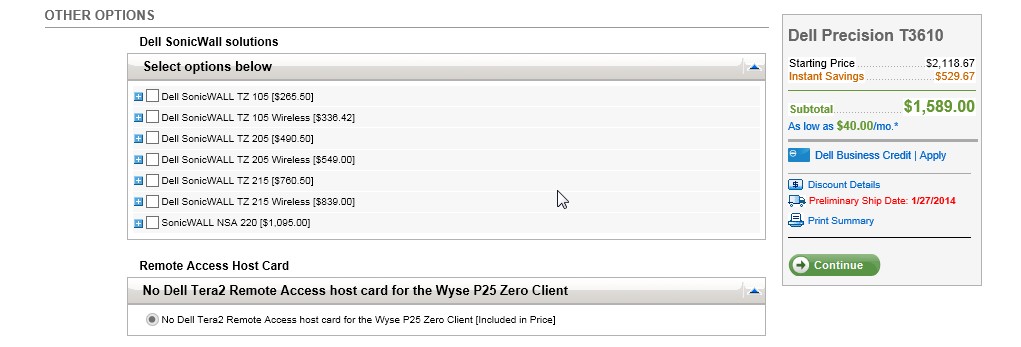 No costs added to you dear customer is our Dassault Autodesk cloud pledge. So lets see here. I want to buy a Dell Precision T3610 with decent ram and graphics that would cover most users. But look at the new options. This NSA whiz bang thing adds 60% to the cost of the workstation.